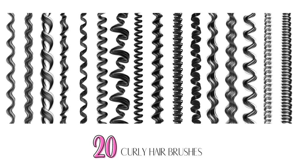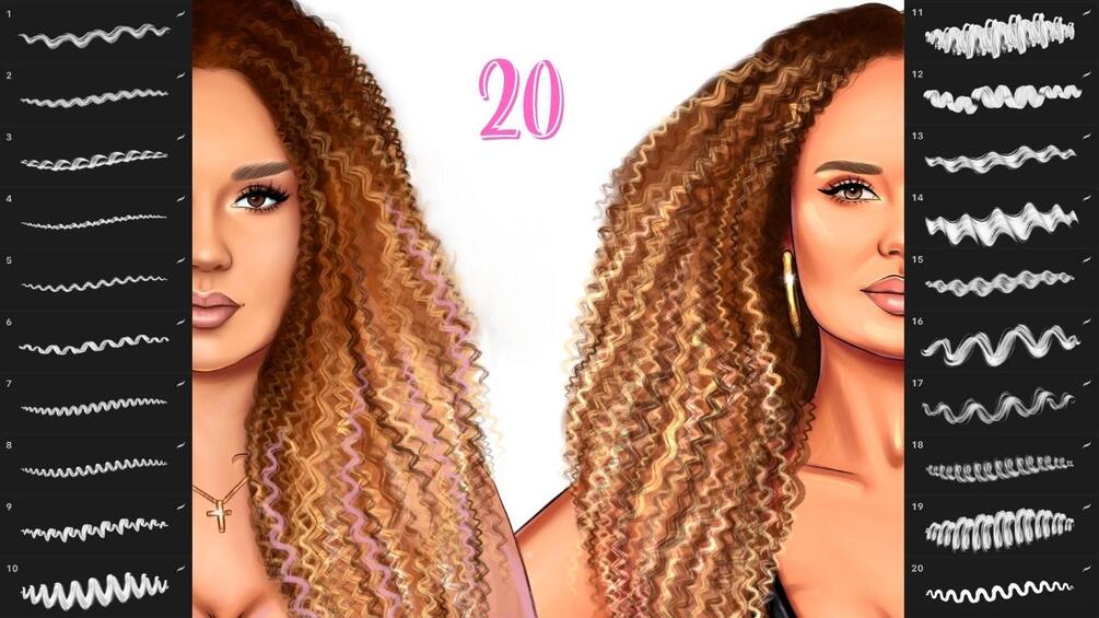 20 Curly Wavy Hair Brushpack Set for Procreate